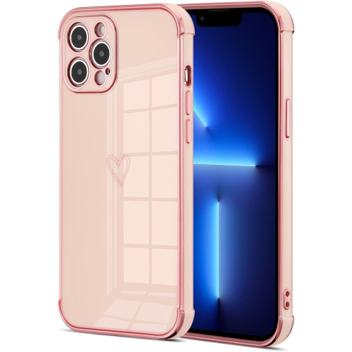 Compatible with iPhone 13 Pro Case with Gold Heart, Luxury Plating Edge Bumper Cute Case with Full Camera Lens