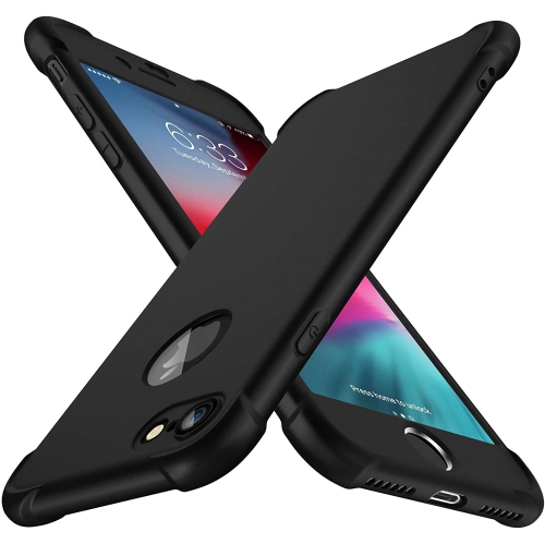 Compatible with iPhone 7 and iPhone 8 Case,with[2 x Tempered Glass Screen Protector] Shockproof Cover for iPhone 8 Thin Anti Scratch Hard PC Silicone TPU Case for iPhone 7 8 (4.7") Black