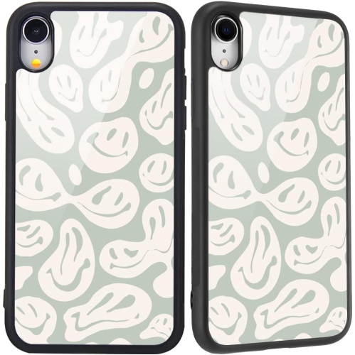 Compatible with iPhone XR Case Happy Funny Face Hippie, Hard Back with Trippy Cute Pattern Indie Collage Design