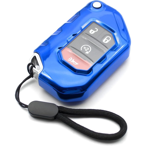 Compatible with Jeep Wrangler JL JLU Rubicon Wagoneer Gladiator JT Sahara JLU Blue TPU Flip Key Fob Cover Case