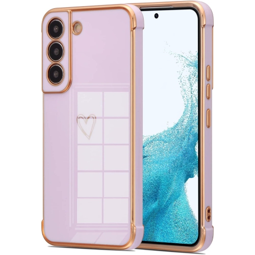 Compatible with Samsung Galaxy S22 Plus Case with Gold Heart, Luxury Plating Edge Bumper Cute Case with Full