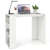The compact footprint fits perfectly in apartments, dorms, or bedroom corners, while the integrated shelf keeps books, supplies, or decor neatly organized and within reach. With a clean, modern design and sturdy construction, this desk offers a practical workspace without sacrificing style—perfect for working, studying, or creating in limited square footage.