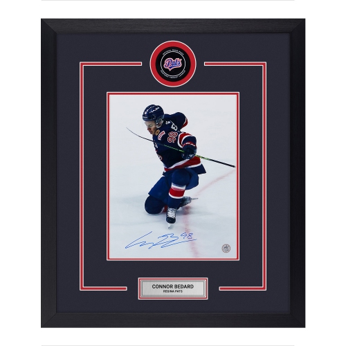 The 11x14 photo in this frame is hand-signed by Connor Bedard.