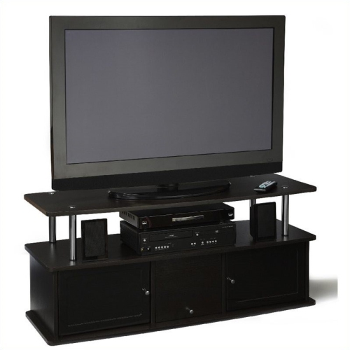 The closed storage cabinets on this black wood Designs2Go TV stand keep your equipment looking neat. You'll have plenty of space for your TV, media, DVD player, movies, games, and other components. Made of wood and stainless steel components, this product is built to last for many years of enjoyment. Fits with almost any decor, but especially more modern styles. Bring home this chic piece to entertain the family and guests in any room.Features : ...