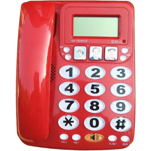 Corded Phone, Two-Button Dialing, Speakerphone, and Caller ID for Home/Office Use - Red