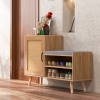 Costway 2-in-1 Rattan Shoe Cabinet with Bench 3 Adjustable Shelves & Solid Pine Wood Legs