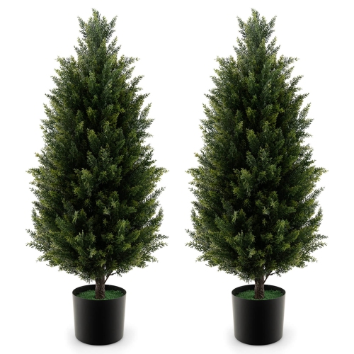 Costway 2 Pack 37.5" Artificial Topiary Cedar Tree with Cement Plastic Pot & Realistic Moss
