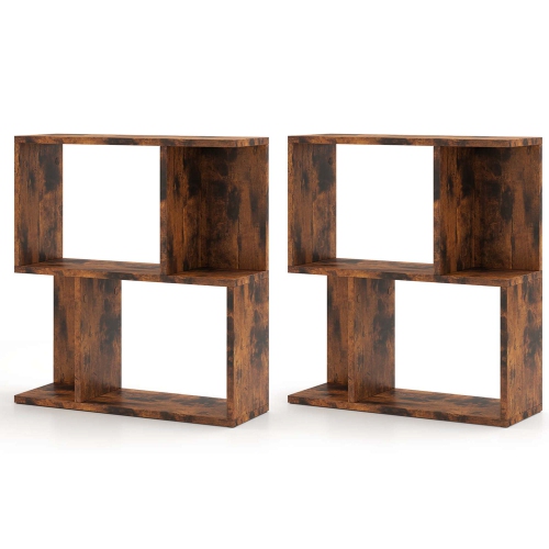 Costway 2 PCS 3-Tier Bookshelf Geometric Bookcase Side Table with Open Storage Display Shelf