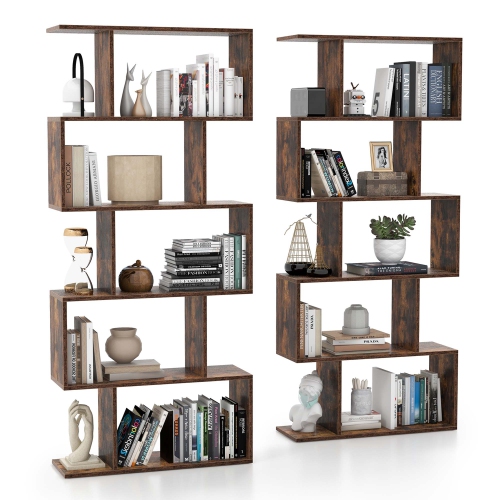 Costway 2 PCS 5-Tier Bookshelf Geometric S-Shaped Bookcase Room Divider Storage Display