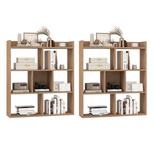 Costway 2 PCS 7-cube Bookcase Open Storage Shelf with Anti-tipping Kits for Living Room Natural
