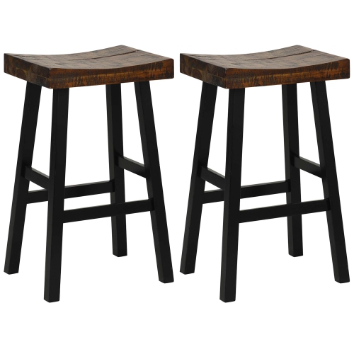 Costway 29" Bar Stool Set of 2 Bar Height Solid Wood Curved Saddle Seat Footrest
