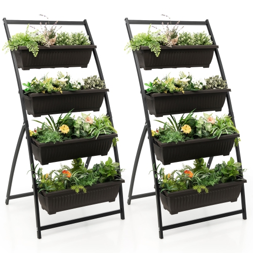 Costway 2PCS 5 FT 4-Tier Vertical Raised Garden Bed Elevated Planter w/4 Container Boxes