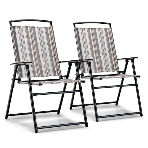 Costway 2pcs Patio Folding Sling Chairs Dining Armrest Backrest Outdoor Portable