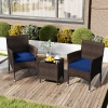 Costway 3 PCS Outdoor Conversation Set with Cushioned Seat & Tempered Glass Tabletop