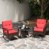 Costway 3 PCS Rocking Bistro Set with Removable Cushions & Tempered Glass Top Coffee Table