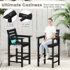 Constructed from premium HDPE material, the set is waterproof, sunproof, and anti-fading with sturdy stainless steel screws. The HDPE bistro bar set features a 30" slatted tabletop for easy maintenance and spacious usability. Each bar chair features a 105° inclined backrest, 3" armrests, and 2.5" footrests for ultimate comfort. The stylish, faux wood texture enhances outdoor aesthetics, making this patio bar set the perfect choice for entertaining or peaceful retreats.