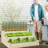 This 3-tier raised garden bed measures 47" x 47" x 22" (L x W x H) and comes with 3 tiers of planter boxes with different depths, which cater to a diverse range of plant root systems and growth needs. And the 22" depth is suitable for cultivating saplings. Besides, it adopts an open-ended base, which ensures proper drainage and ventilation, promoting healthy growth. Crafted from resistant fir wood, this garden bed is resistant to warping or cracking, ensuring long-term use.