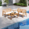 Upgrade your outdoor space with this 4-piece patio wood furniture set. Crafted from resistant acacia wood, this set is extremely robust and features removable cozy seat cushions for ultimate comfort. The ergonomic design offers superior back support, while the versatile layout options make it perfect for any outdoor area. Perfect for gardens, patios, or poolside areas, this patio furniture set is easy-to-clean with out too much maintenance and sure to impress.