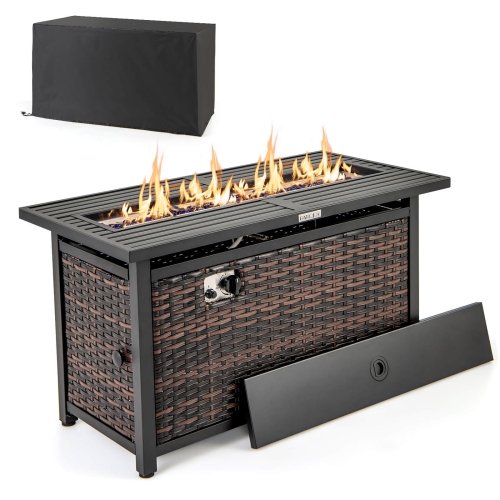 Costway 45" Propane Rattan Firepit Table with Glass Stones & Protective Cover Metal Frame