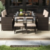 Costway 9 PCS Patio Dining Set with Tempered Glass Table & Ottoman Removable Cushions off-White/Beige
