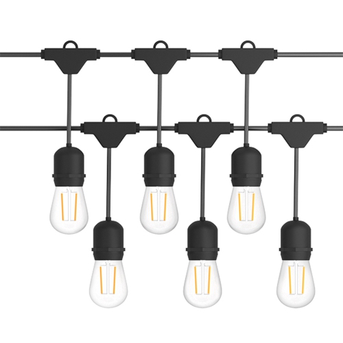 The most resistant and commercial E26 Medium Base stringer and LED bulb on the market today. Package includes 2x 48ft long heavy duty string lights with 30 Standard base and 30 clear LED bulbs(one of bulbs is for back-up). This makes the string commercial. professional. and versatile for permanent outdoor lighting applications. Look great for tents. weddings. restaurants. patios. special events. and Christmas decor. Each set comes ready to plug in.