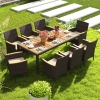 Costway 9PCS Outdoor Dining Set with Acacia Wood Table Top Patio Dining Set for 8 People Navy/Beige
