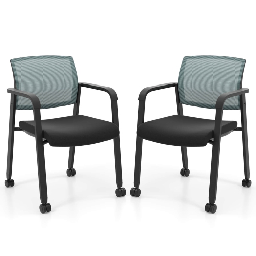 Costway Conference Chairs Set of 2/4 Stackable Office Guest Mesh Chair Waiting Room Wheels