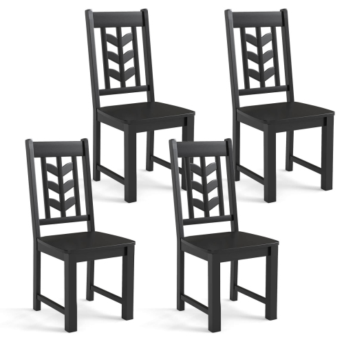Costway Dining Chair Set of 4 with Rubber Wood Frame & Leaf-shape High Back for Kitchen Black