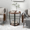 Enhance your living space with our 2-tier round end table, offering ample storage and display space for cups, vases, and magazines. Crafted with a sturdy metal frame and X-shaped support legs, this side table promises durability and stability.