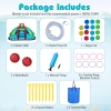 Filled with excitement, the water park offers 2 thrilling water slides, a splash pool with obstacles, and water cannons for endless amusement. With a spacious play area featuring a bouncing section, climbing wall, basketball hoops, and a ring toss game. Crafted from strong Oxford fabric and mesh fabric, the water slide ensures long-lasting play and good air circulation.