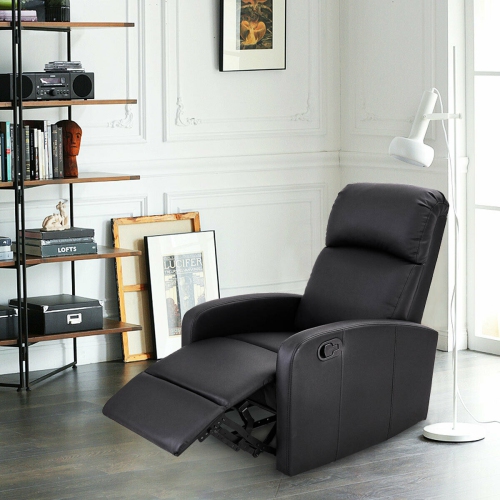 Costway Manual Recliner Chair Lounger PU Leather Sofa Seat Living Room Black