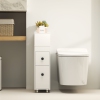Costway Movable Bathroom Storage Cabinet Narrow Toilet Side Paper Holder w/ 2 Drawers