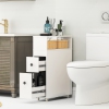 Costway Movable Bathroom Storage Cabinet Narrow Toilet Side Paper Holder w/ 2 Drawers