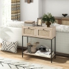 Costway Rattan Console Table with 2 Rattan Drawers & Open Storage Shelf Metal Legs Oak