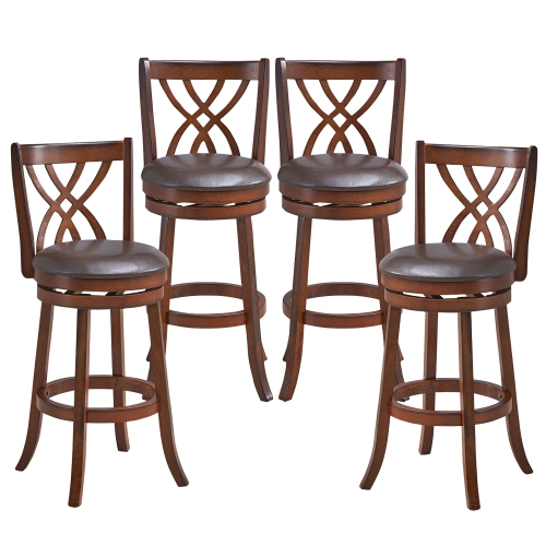 Costway Set of 4 Swivel Bar Stools Bar Height Dining Pub Chairs with Rubber Wood Legs