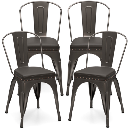 Costway Stackable Metal Dining Chairs Set of 4 with Backrest & PU Leather Padded Seat Black/light Black