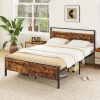 Upgrade your bedroom with this industrial bed frame featuring a wooden headboard and footboard. The combination of metal and rustic wood grain adds chic industrial charm that complements any decor. With 12.5 inches of under-bed clearance, you'll find ample space for boxes or seasonal clothing, keeping your room tidy. Plus, the metal slats mattress foundation eliminates the need for a box spring, accommodating 8"-12" mattresses for your convenience.