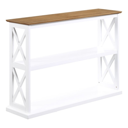 Bring luxury and elegance home with the Coventry Console Table with Shelves by Convenience Concepts. This beautiful piece boasts carefully crafted beveled edges while showcasing a classic double "X" design, giving off a bold modern vibe. Multiple finishes are available to choose from that fit several home styles such as farmhouse, coastal, and transitional designs. Three spacious tiers of shelving offer plenty of room to display elegant home décor, collectibles, and st...