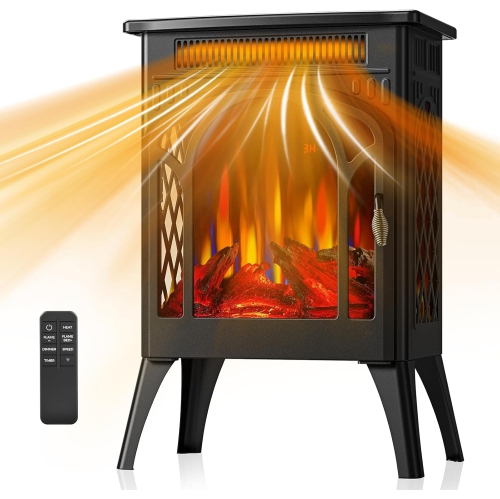COWSAR Electric Fireplaces, 1500W Electric Stove Heater, 4 Realistic Flames, Remote Control, 8H Timer, Fireplace Heater for Indoor Use, 5100 BTU