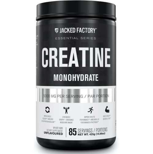 Elevate your fitness journey with Jacked Factory's Creatine Monohydrate Powder. This unflavored supplement, packed with 85 servings, is designed to fuel muscle growth, increase strength, and amplify energy output for enhanced athletic performance. Unleash your full potential with a trusted and effective creatine solution.
