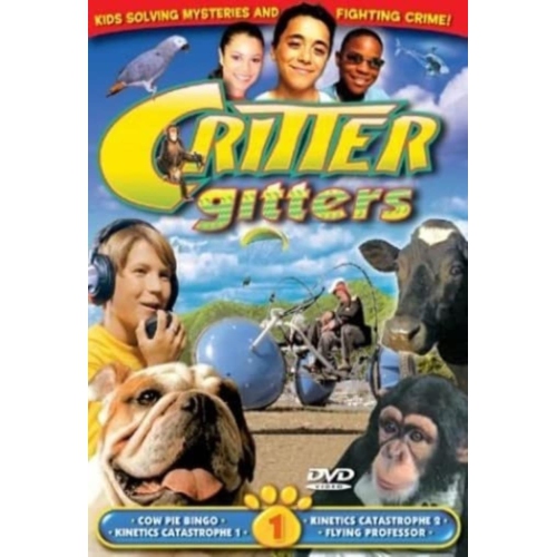 <html>Critter Gitters is a delightful half-hour live-action program centering on a group of neighborhood kids who join forces with two veterinarians and an inventive professor to solve mysteries and international crimes involving animals of every size, shape and species. Every episode contains solutions to ethical dilemmas and educational material and information about animals, science and geography. "Critter Gitters" has been endorsed by the Children's Television Council.<p><b>COW PIE BINGO: </B>Ground squirrels have created holes on the high school football field, causing the players to injure themselves. Professor Headful decides that a Cow Pie Bingo contest could raise enough money to remove the squirrels once and for all. The Professor uses scientific principles to predict the exact time and spot where the first cow will plop it!<p><b>KINETICS CATASTROPHE I & II: </B>Mr. Belcher, the man who says he hates kids, enters a "Kinetic Sculpture" race, which pits hand-powered contraptions racing against each other over mud, water and sand! The grand prize of a free trip to Australia has all the Critter Gitters pairing up in teams. Two episodes.<p><b>FLYING PROFESSOR: </B>The Critter Gitters, along with Professor Headful, are hopeful that they can teach "Zeus," an injured African Grey bird, how to fly again. The Professor decides to take Zeus along with him on a hang-gliding expedition off of a cliff top, while Jimmy, Nick and Annie monitor his progress from inside the Critter Gitter van.</html>