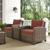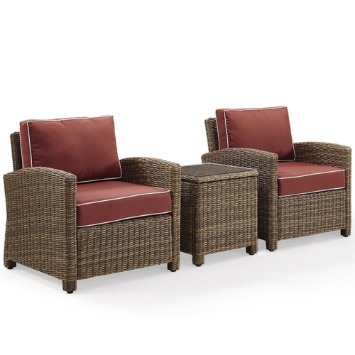 Crosley Bradenton 3 Piece Wicker Patio Conversation Set in Brown and Sangria