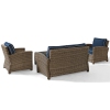 Crosley Bradenton 4 Piece Wicker Patio Sofa Set in Brown and Navy