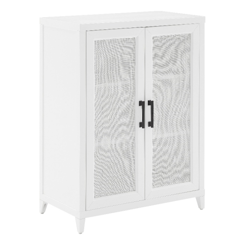The Milo stackable storage pantry showcases a simple design with unique details. The large cabinet doors feature beautiful poly-rattan mesh panels, which conceal adjustable and removable shelves. Great as a standalone accent cabinet, it can also be combined with a second unit to double your storage without sacrificing space.Features : Materials: MDF, particle board, poplar wood, birch veneer, PE wickerFinish: WhiteGenuine meta...