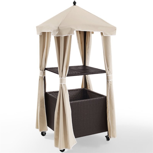Crosley Palm Coastal Wicker / Rattan Beige Patio Towel Valet with Cover