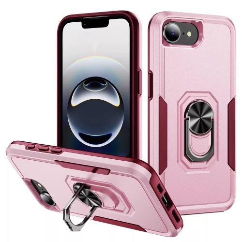 [CS] Dual Layers Heavy Duty Magnetic Hard Kickstand Case with Ring Holder for iPhone 16e, Light Pink