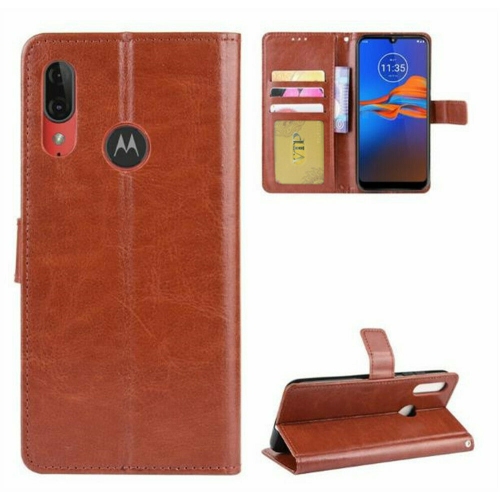 [CS] Motorola Moto E6 Case, Magnetic Leather Folio Wallet Flip Case Cover with Card Slot, Brown