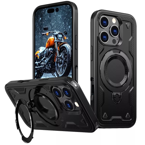 [CS] Shockproof Kickstand Magsafe Case Cover with Ring Stand for iPhone 16 Pro, Black