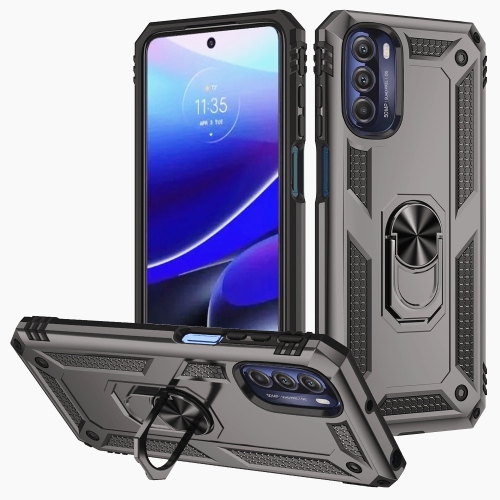 【CSmart】 Anti-Drop Hybrid Magnetic Hard Armor Case with Ring Holder for Motorola Moto G 5G 2022, Grey