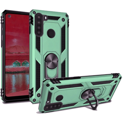 【CSmart】 Anti-Drop Hybrid Magnetic Hard Armor Case with Ring Holder for Samsung Galaxy A21, Midnight Green